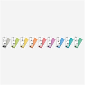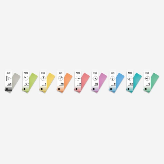 The NCS Block set is arranged by nuance, has one block for colours with 10% blackness, one for 20% blackness and in ongoing increments.
